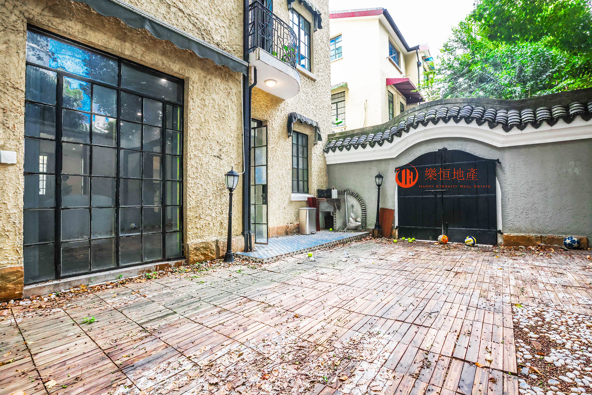 本案为翠竹郷弄堂中历史风貌保存完好,产权信息完整的一栋老洋房品质的新里,水泥砂浆拉毛墙面,双坡机制平瓦顶,北面晒台转角处有圆柱状烟囱,总高三层,双开间,一楼花园50平,二楼半露台15平,二楼小挑台,有精美的Art deco铁艺~