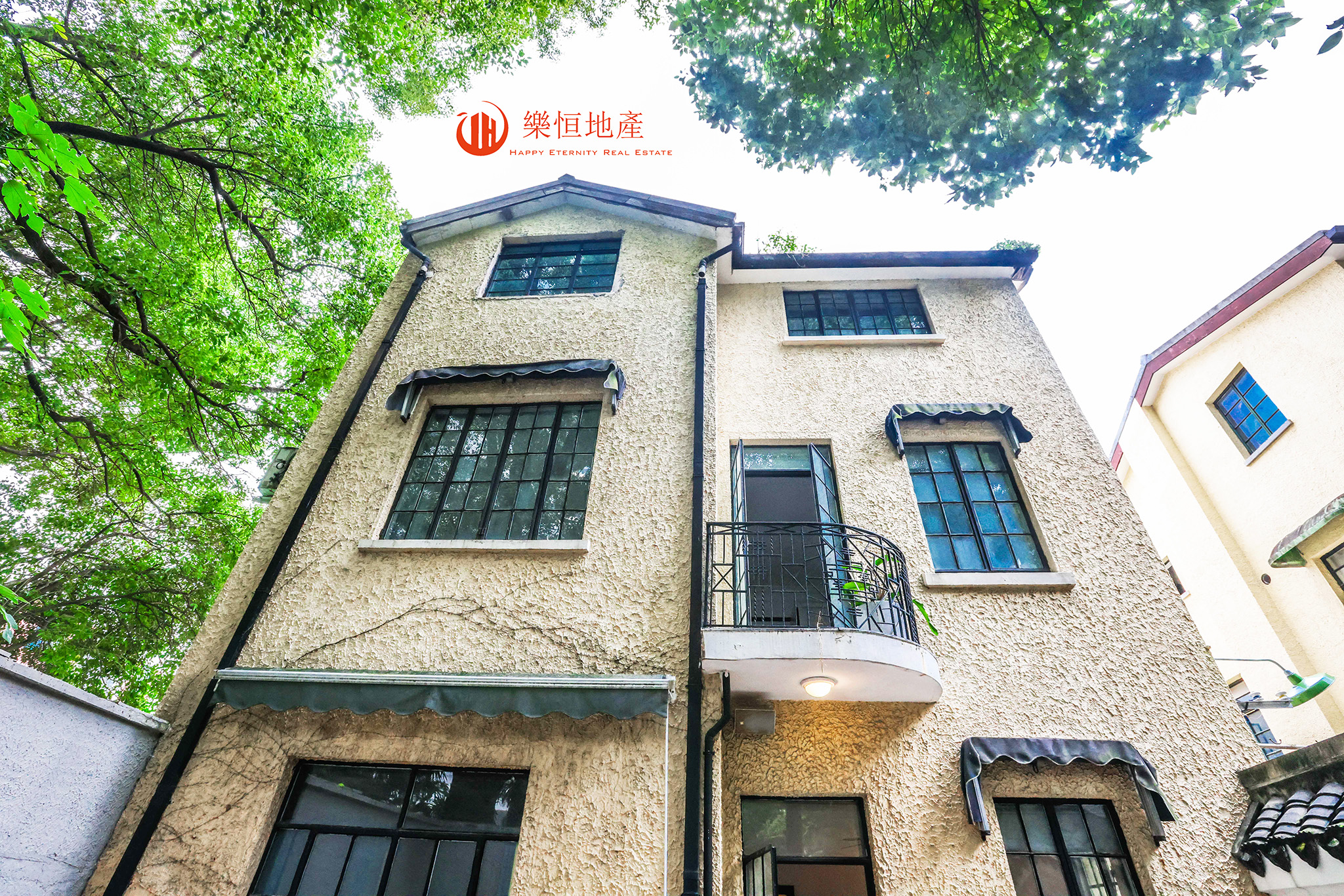 本案为翠竹郷弄堂中历史风貌保存完好,产权信息完整的一栋老洋房品质的新里,水泥砂浆拉毛墙面,双坡机制平瓦顶,北面晒台转角处有圆柱状烟囱,总高三层,双开间,一楼花园50平,二楼半露台15平,二楼小挑台,有精美的Art deco铁艺~