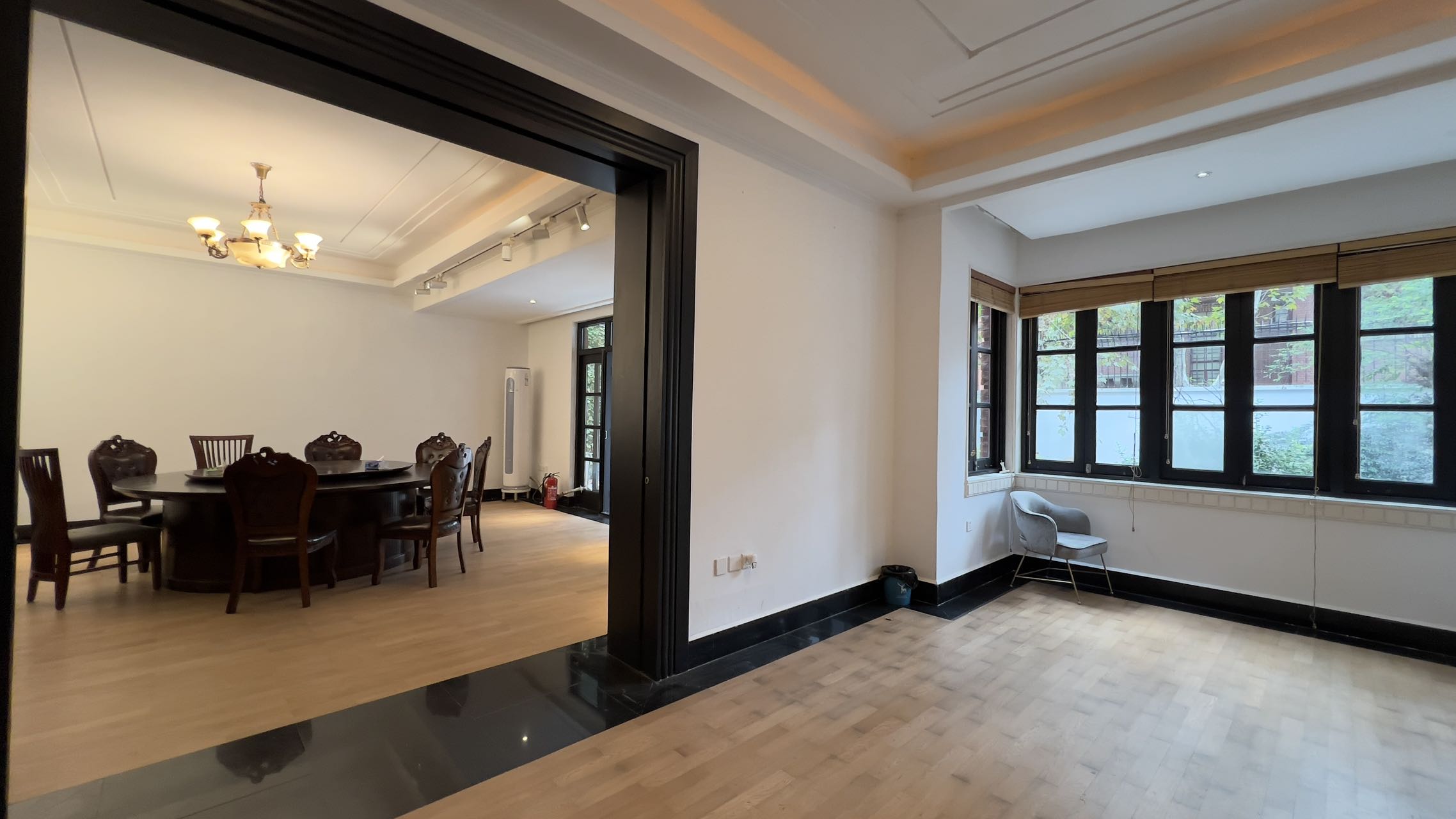 位于地铁口7/9号线,花园可停车5部,门口车位充足,总高三层,露台已做阳光房,适合接待、会所、办公、居家。